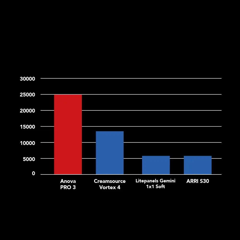 Anova PRO 3 delivers a class leading output of over 25,000 lux at 1M, more than double the output of both the previous generation Anova, and even the AEOS 2 PRO.