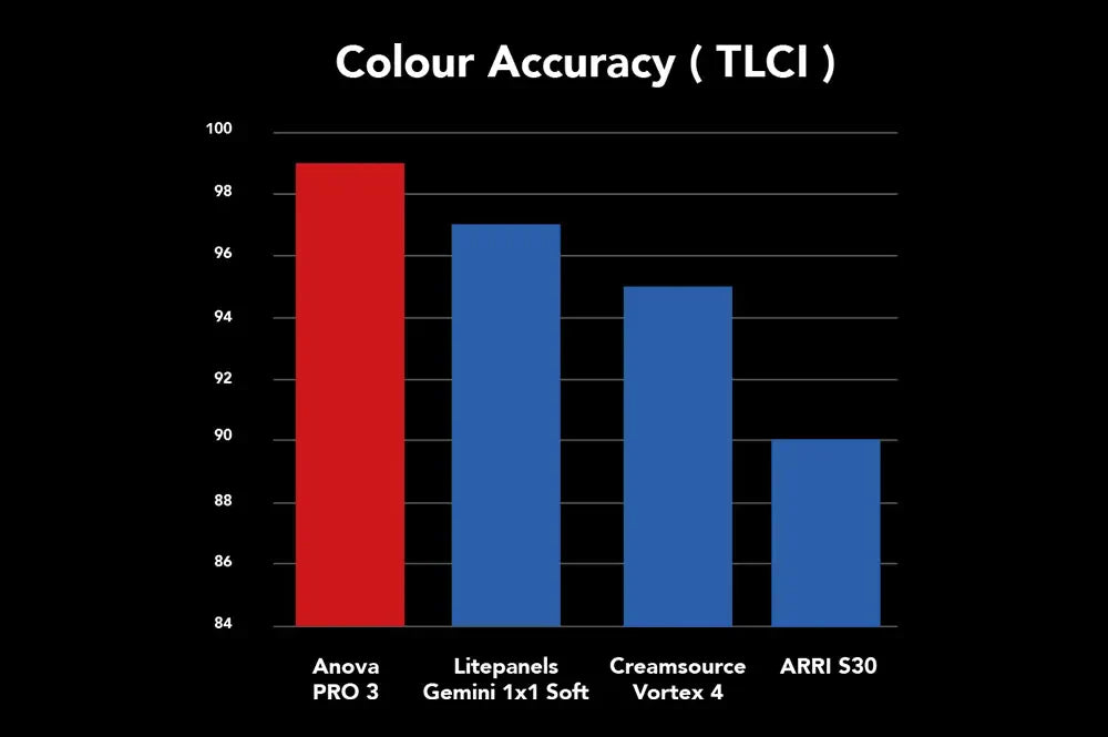 Experience unparalleled color precision with the ANOVA Pro 3, setting the industry standard for Television Lighting Consistency Index (TLCI) and affirming its position as the best-in-class lighting solution.